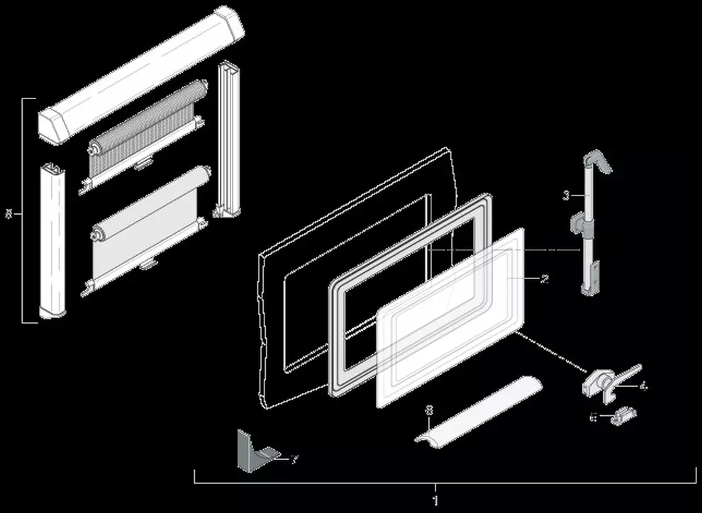 LMC. Finisch Liberty Alkove 670. vm 2006 alkovin ikkuna alkuperäinen lisäosineen ja as osineen. Kuvan osat No.1 sarja Sarja 8 kuvassa tilattava erikseen.