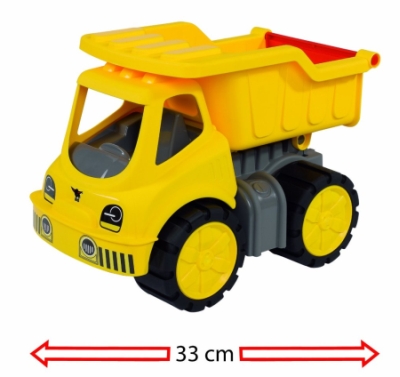 Suuri kippiauto Big Power Worker Kipper. Lapsille yli 2 vuotta, Kippikallistus takapuolelle Tilavuus noin 1,0 litraa, renkaat valmistettu pehmeästä materiaalista pienten lasten on helppo käyttää ja työntää leikeissään. Koko 33 x 20 x 23 cm ja ilman pakkausta, Paino 6400 g. Tilaustuote Toimitus 1-3 viikkoa tilauksesta. 9929016 .