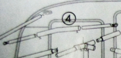 Etuteltan kaareva kattoväliputki 160-260 cm teräs. Säädettävä pituus ja kaari ylöspäin. Molemmissa päissä kirittävät ja aukeavat tartuntaleuat siipimuttereilla. Tilaustuote. Kuva 4.