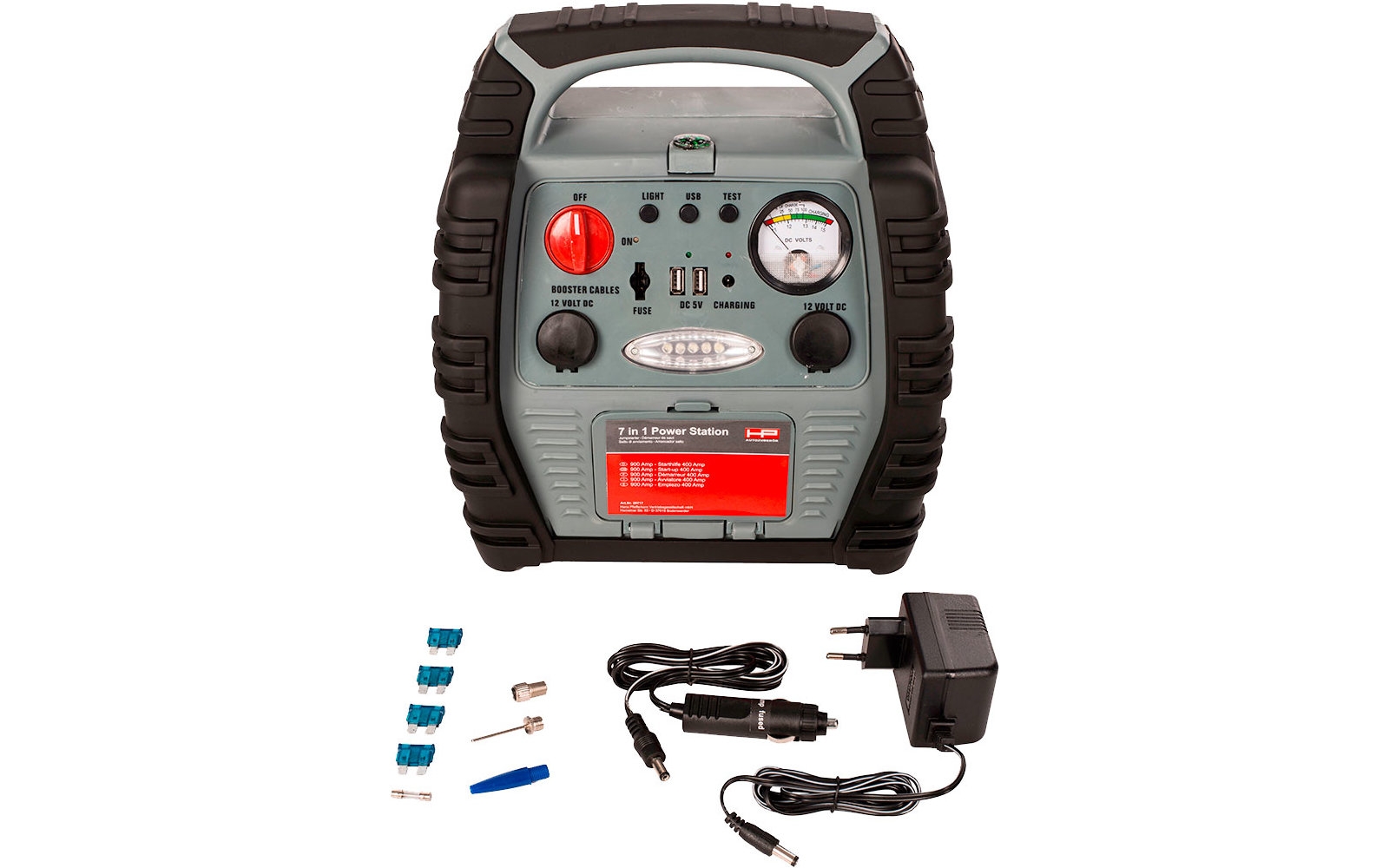 HP 7 in 1 -voima pikakäynnistyssarja 12 V / 900 A Tuotenumero: 309290 Tuotteen yksityiskohdat Kaksi muuta sovitinta vapaa-ajan tarvikkeisiin Suojapiirillä ja automaattisella sulakkeella lataustason... Lue lisää