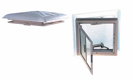 Kattoluukku 40 x 40 cm:n aukkoon, kaarevilla leveillä reunoilla. ja 24-56 mm:n katonpaksuuksille. Sisältää hyttysverkon mutta ei pimennysverhoa. Paino on 3,650 kg. Kahvoissa lukitukset. Avattava kahvoista ylös työntämällä. Virtaviivainen.