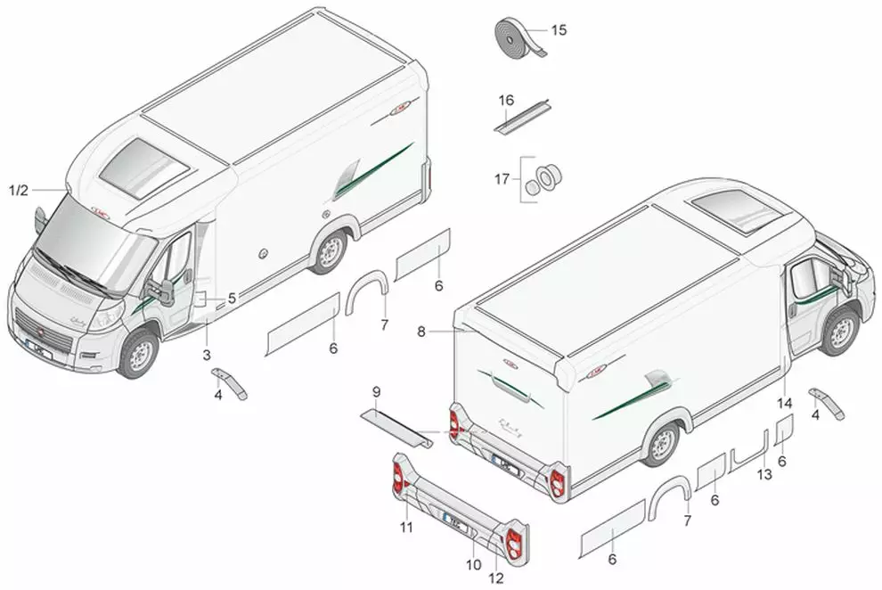 LMC Breezer Van V 643 vm. 2011 Takapuskurin oikea kulmaosa lakattu. Tilaustuote tehtaalta. Kuvassa No,12.