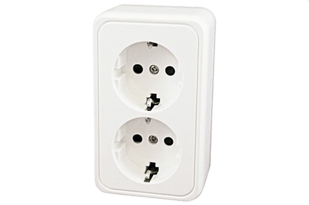 Schuko-pisrorasia 2-os.pinta, valkea, kuvassa ruskea.
